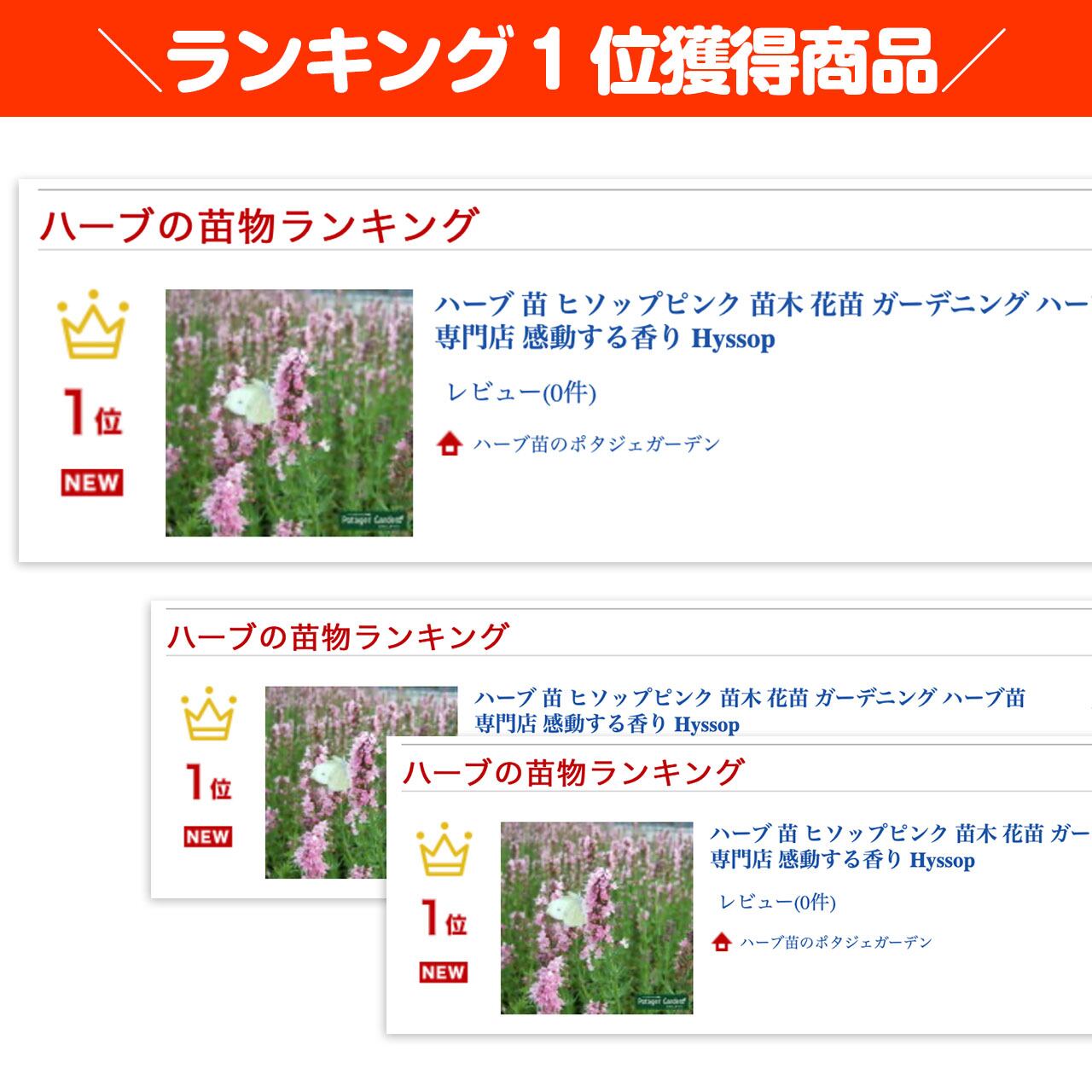 ◎写真は参考でお届けするハーブ苗とは異なります。◎商品に花はついていません。咲く花の色は写真と異なる場合があります。◎ハーブ苗はお届けする時点で元気な苗から選んでいます。◎札差しは異なる場合があります。◎刺激の強い品種などございますので使用前に専門書籍などをご参照ください。◎「在庫あり」でもご希望に添えない場合があります。「在庫なし」でもご用意できる場合があります。お気軽にお問い合わせください。◎開花期、収穫期、草丈は生育環境などにより異なります。◎苗は6個以上ご購入ください。5個以下の場合、資材費がかかる場合があります。