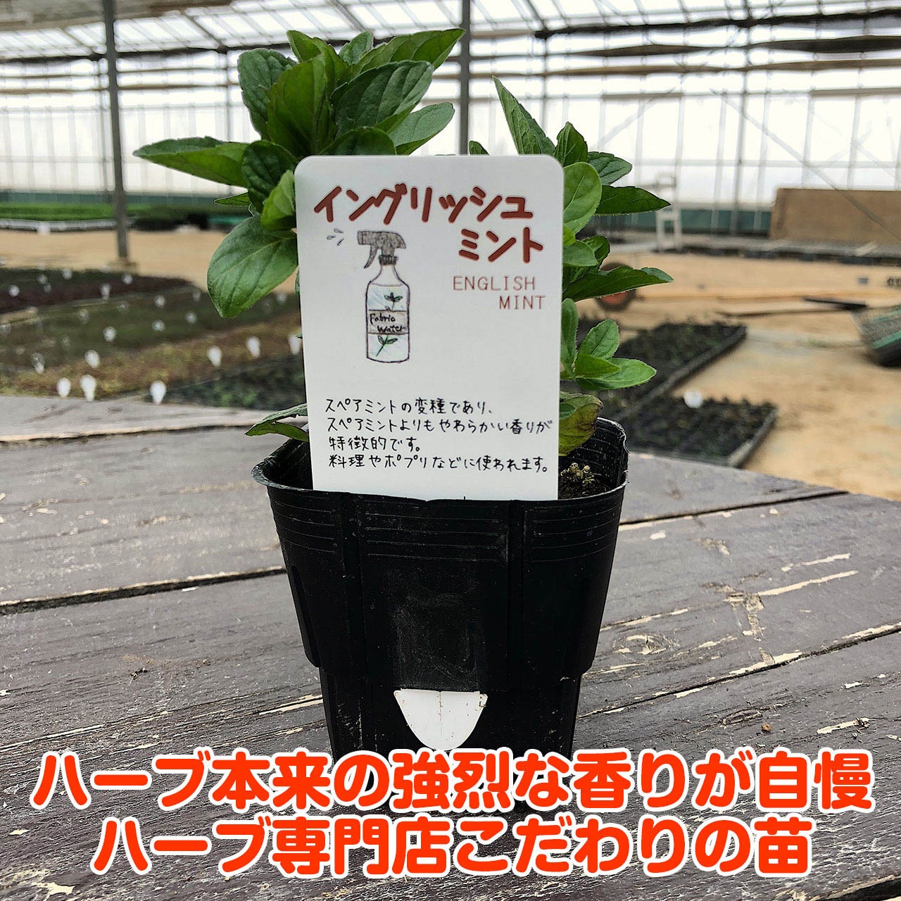 丈夫なハーブで比較的季節を問わず栽培できるのでビギナーの方にもおすすめです。ぜひ揃えておきたい人気の苗はペパーミントとスペアミントの苗。またアップルミント、パイナップルミント、グレープフルーツミント、オレンジミントなど香りのする植物の名前がついたミントの他に、イングリッシュミント、ペニーロイヤルミント、マウンテンミント、ホースミントなど限りなく仲間がいます。地中海沿岸原産のハーブと異なり、日本の蒸し暑さにも強く半日陰でもランナーがどんどん伸びて旺盛に育ちます。あまり強い日差しを必要としないので明るい室内でも栽培できます。冬は室内に取りこむことで一年中緑の葉に保つことができます。水耕栽培で簡単につくれるミントですが本来ハーブは野生のもので水耕栽培だと香りが薄くなります。ハーブ本来の強烈な香りがする当店のハーブ苗をぜひお楽しみください。■学名:Mentha ■分類:シソ科多年草 ■原産地:地中海沿岸、アフリカ ■コンパニオンプランツ:トマトやアブラナ科の植物 風味をよくします。アリやアブラムシを寄せつけません ■収穫箇所と主な利用法:「葉」「茎」をハーブティーやスイーツの飾りに、ハーブバスに