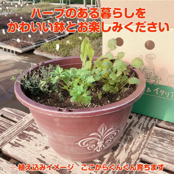 ハーブ 栽培キット アンティークワンポイント吊り下げサークル 茶 苗4個